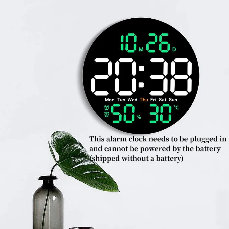 10-Inch LED Digital Wall Clock with Remote – Time, Temperature, Humidity & Alarms