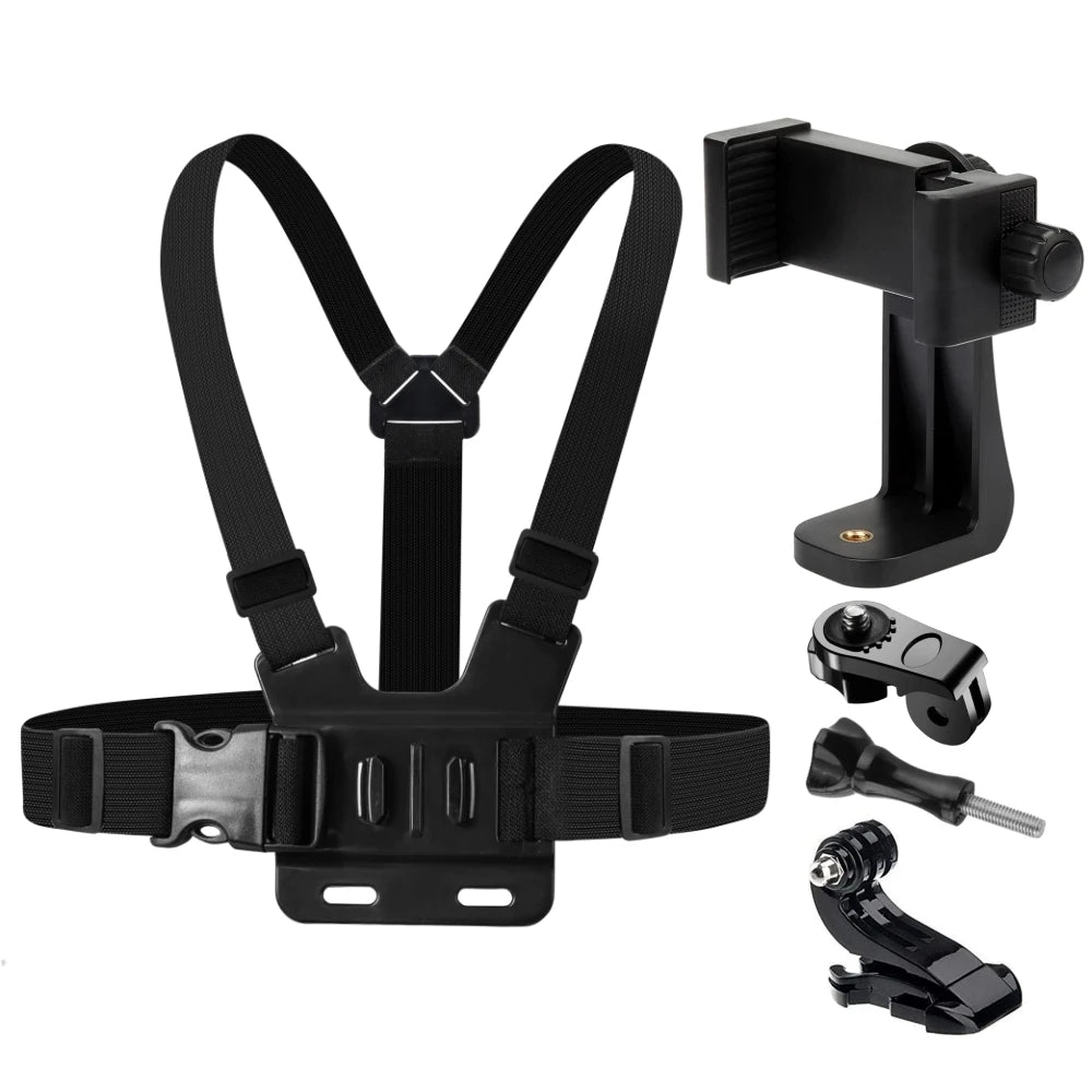 Adjustable chest strap mount compatible with smartphones & action cameras. Ideal for POV live shooting, biking, vlogging & outdoor use.