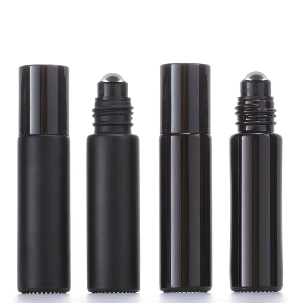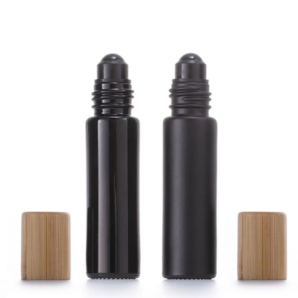 Refillable Black Glass Roll-On Bottles – 5ML / 10ML with Obsidian Roller & Bamboo Cap